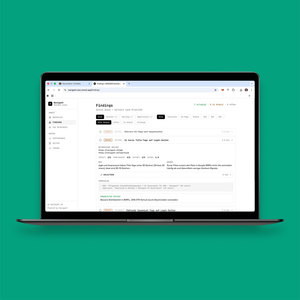 I run Navigant, an AI governance advisory firm for Swiss organizations. I help them reduce AI risk, meet regulatory requirements, and build AI they can actually trust. Based in Zurich, open to hybrid and remote across Switzerland.